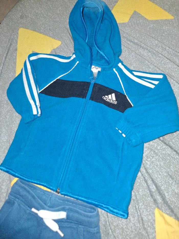 Ensemble 6 mois la veste et une Adidas le pantalon et de marque kiabi la veste à juste un petit acro très peu visible