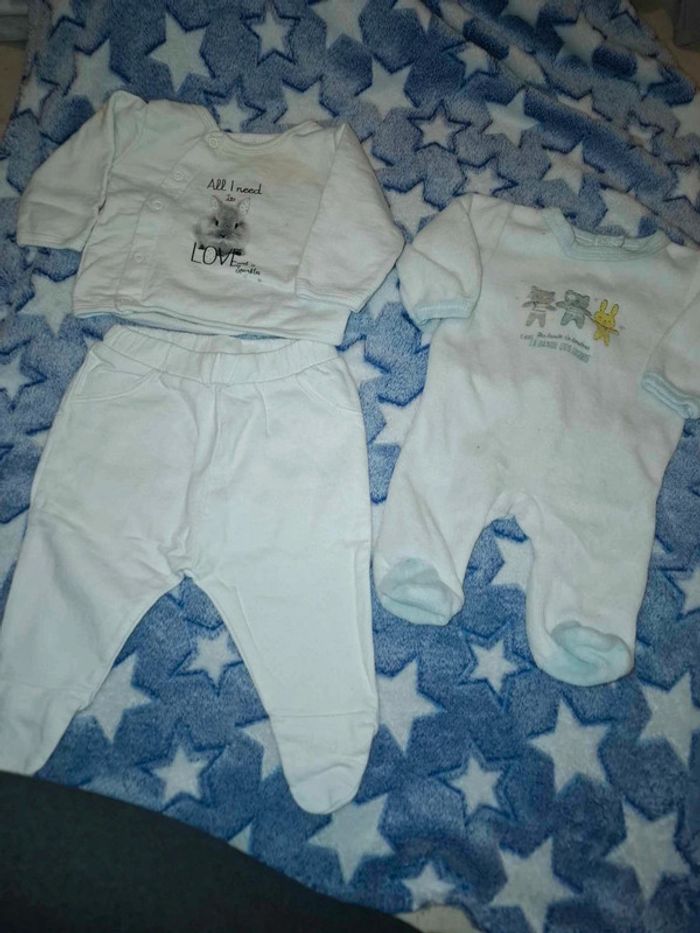 Lot 0-1 mois quelque vetement on pas était porter d'autre on était porter 1 foi Dans le lot il y a 3 pyjama 1 pièces 1 pyjama 2 pièces 1 salopette 1 salopette short 2 grenouillère 2 body 1 chemise