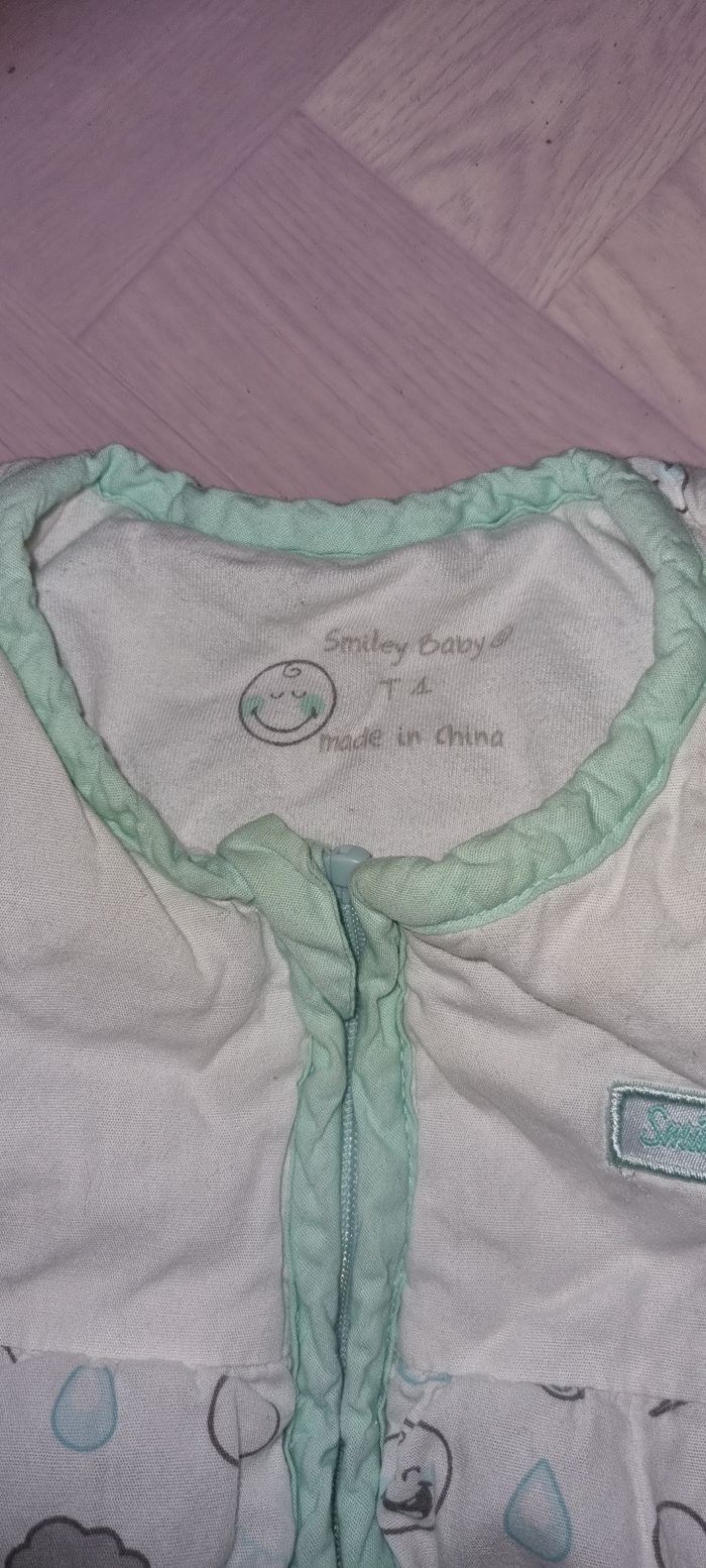 Gigoteuse bébé Marque smiley baby Taille 1 Bon état, seulement tacher sur le col se la gigoteuse (voir dernière photo) 13/04/2022