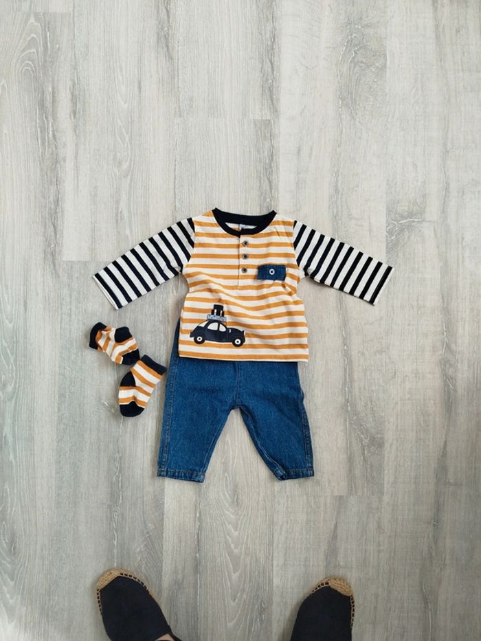 Ensemble t shirt manches longues et petit jeans avec chaussettes assorties t3m