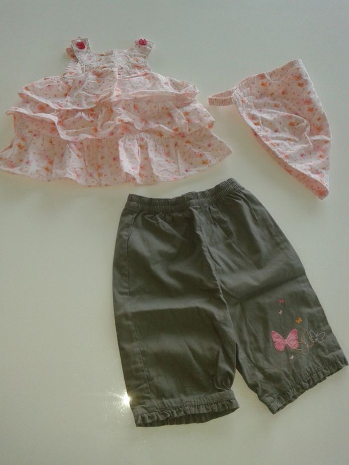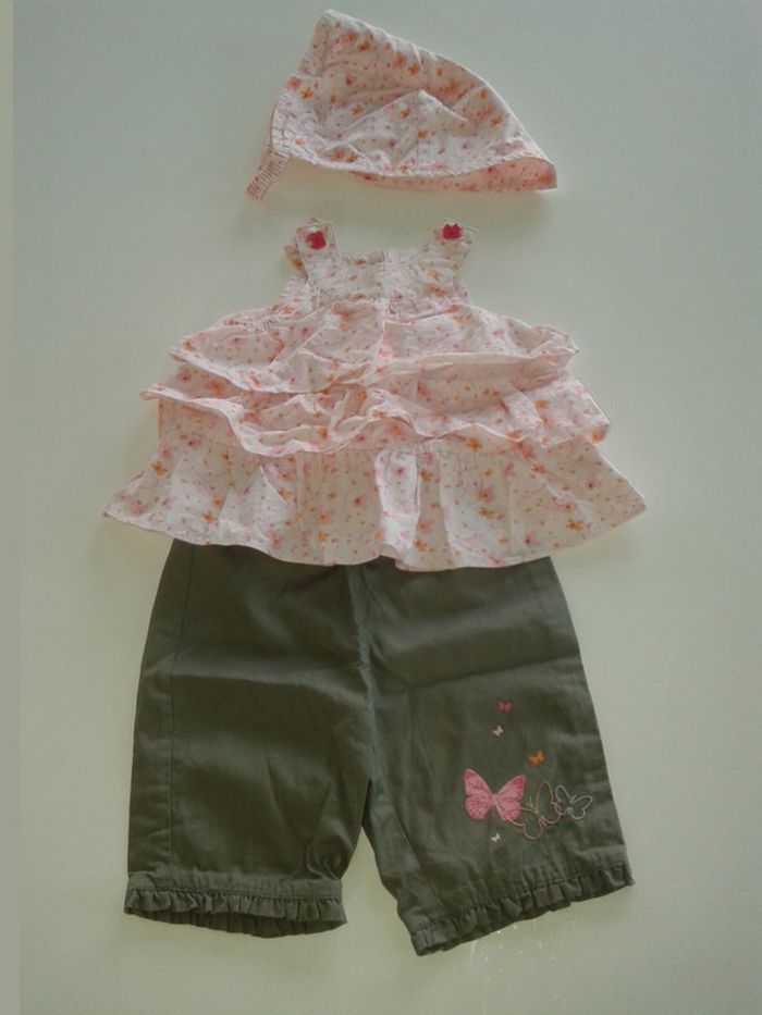 Joli ensemble fleuri tunique, pantacourt et son fichu. 9 Mois . Très bon état
