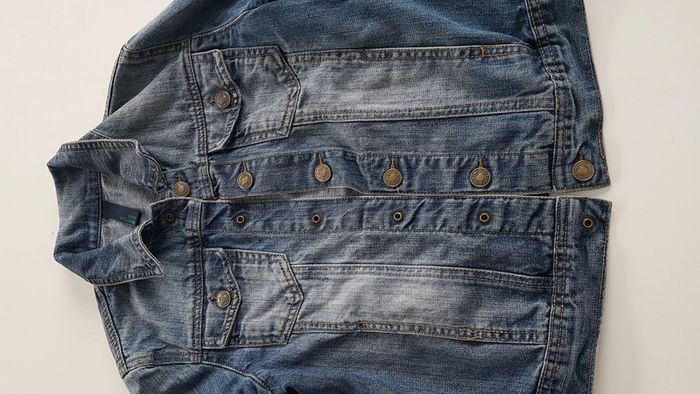 Veste en Jean's Benetton 8-9-10 ans 140 cm Très bon état. Boutons pressions .140 cm...donc 8 - 9 ans et peut aussi convenir à 10 ans car 140cm * voir étiquette sur la photo. Prix ferme