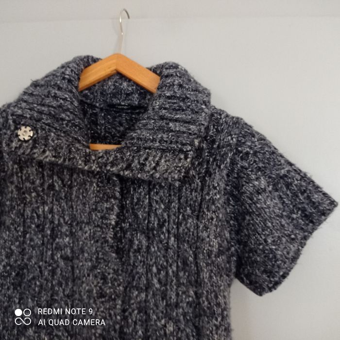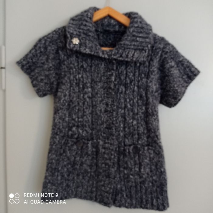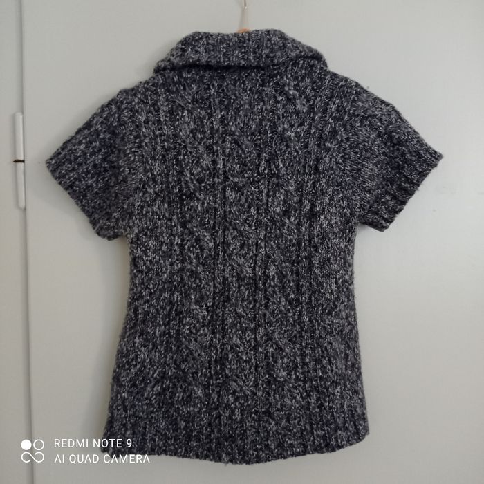 Acrylique. Torsades. Manches courtes. Boutons pression.