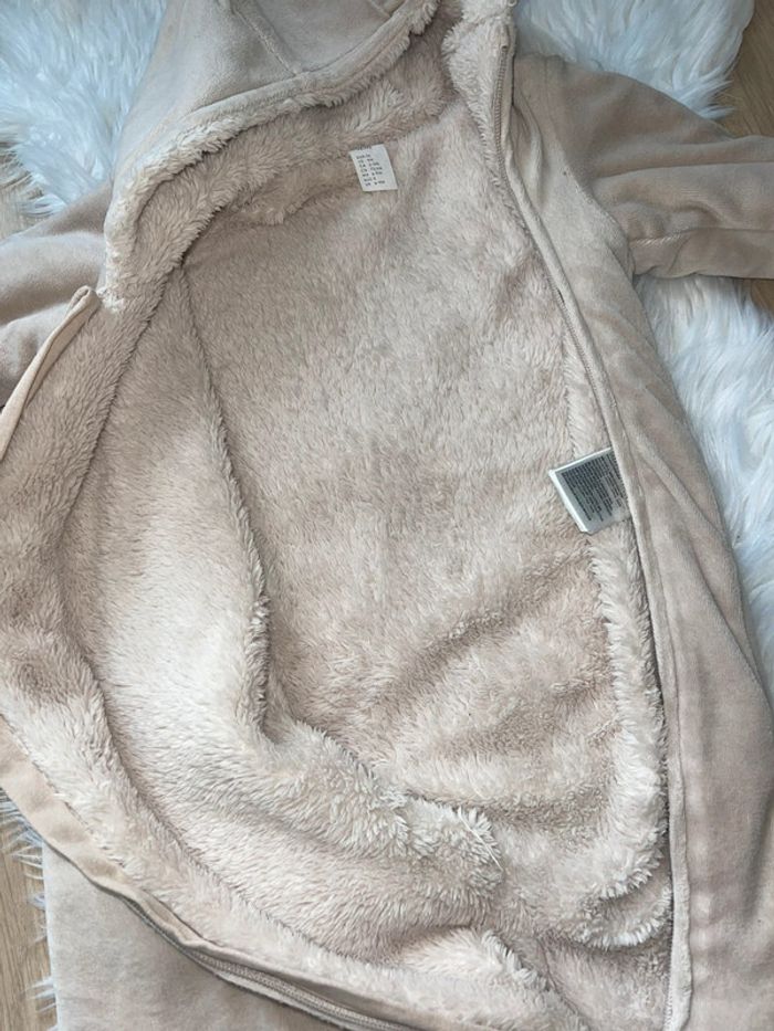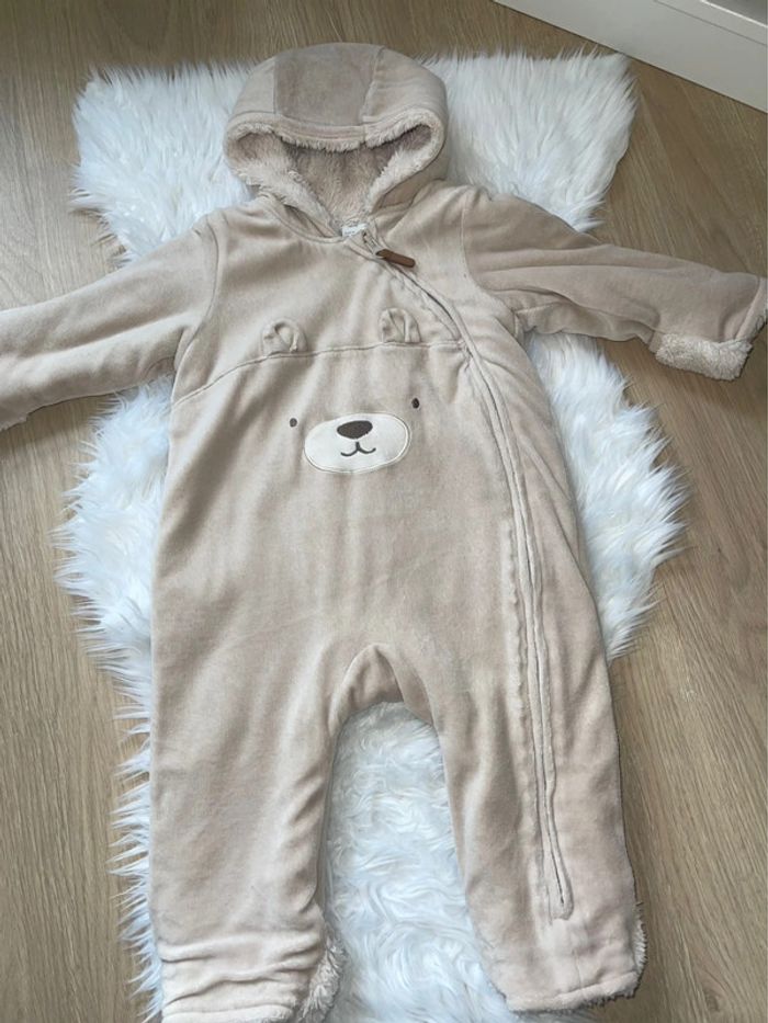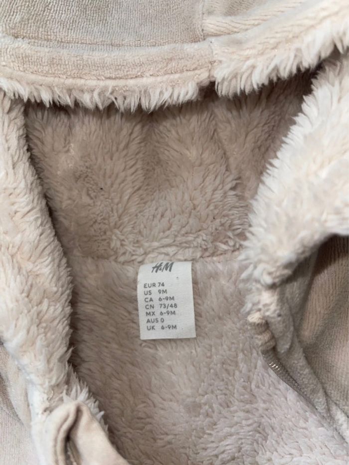 Combinaison pilote en velours polaire crème ourson Polaire à l’intérieur, Moufles et pieds dépliables pour garder les extrémités au chaud. Doublure en tissu peluche doux Neuf H&m 9mois