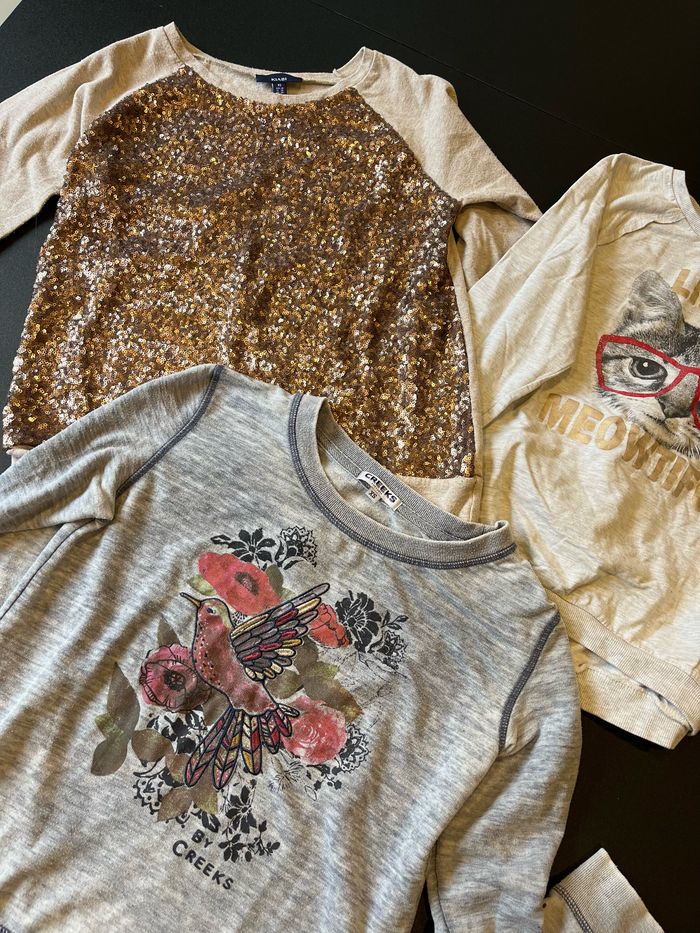 Lot de 3 pulls taille 14 ans et xs Marques : creeks , H&M et kiabi Photos conformes aux articles Prévoir un lavage car stockés dans un grenier dans des boites petits prix pour justifier le fait qu’il ne sont pas repasser et ont déjà été portés