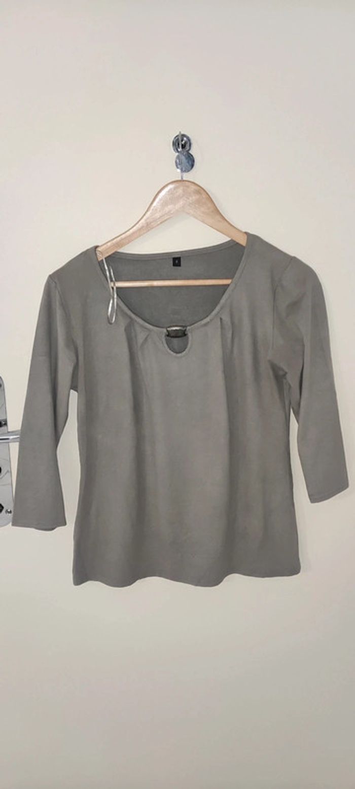 T-shirt / Blouse Gris T.2 Velours ; Manches 3/4 Mesures: Aisselle 47,5cm ; Ventre 42,5cm ; Bas 48cm ; Longueur 56cm Très bon état #ceciliabasset0689_tshirtfemme #ceciliabasset0689_blousefemme