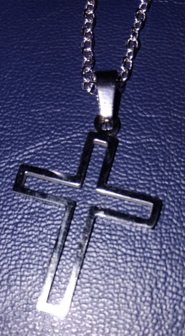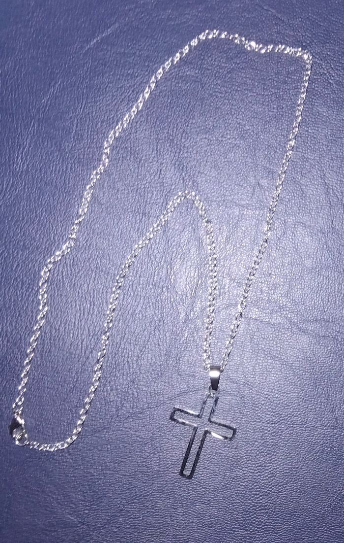 Collier chaîne avec croix argentée - photo numéro 1