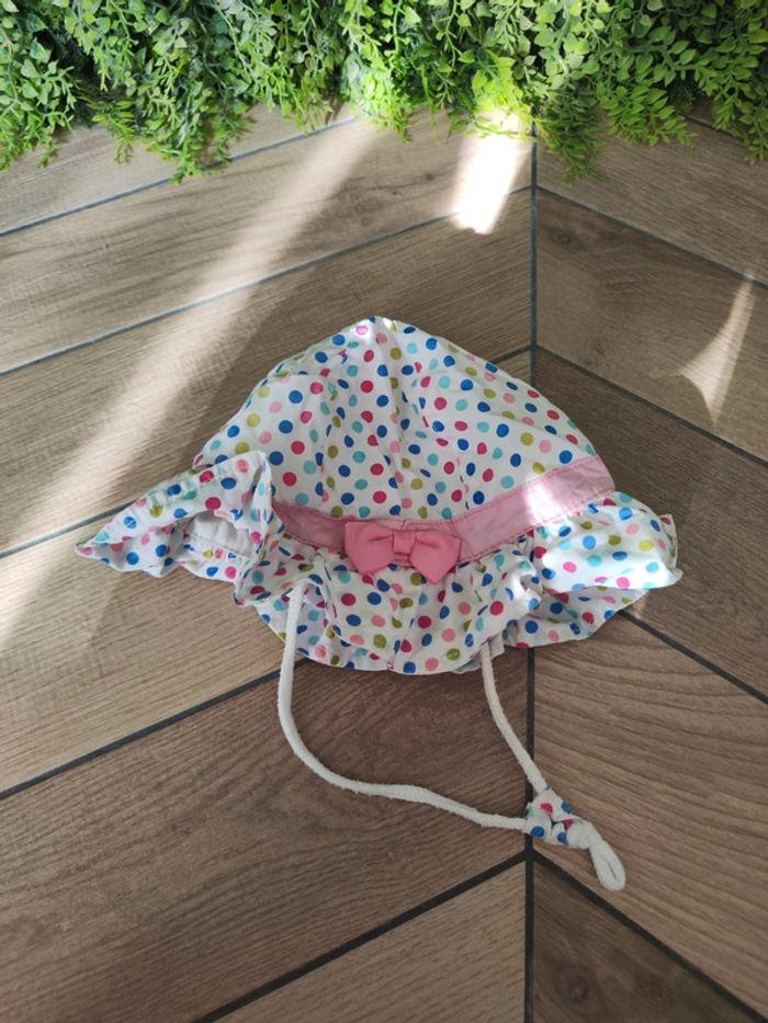 Chapeau bébé avec corde Taille 50 / 24 mois / 2 ans Blanc à motifs plus multicolores Très bon état #ceciliabasset0689_accessoirebébé #ceciliabasset0689_bonnetchapeaubébé #ceciliabasset0689_24moisbébé #ceciliabasset0689_2ansbébé