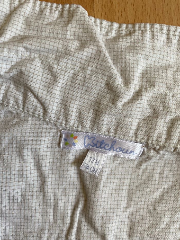 Belle chemise à carreaux à manches longues pour bébé garçon T. 12 mois/74 cm, en coton, en très bon état. Fermeture par boutons devant.