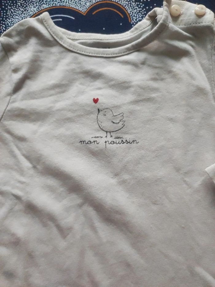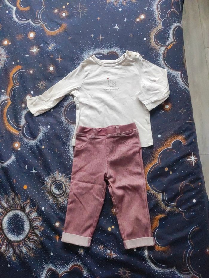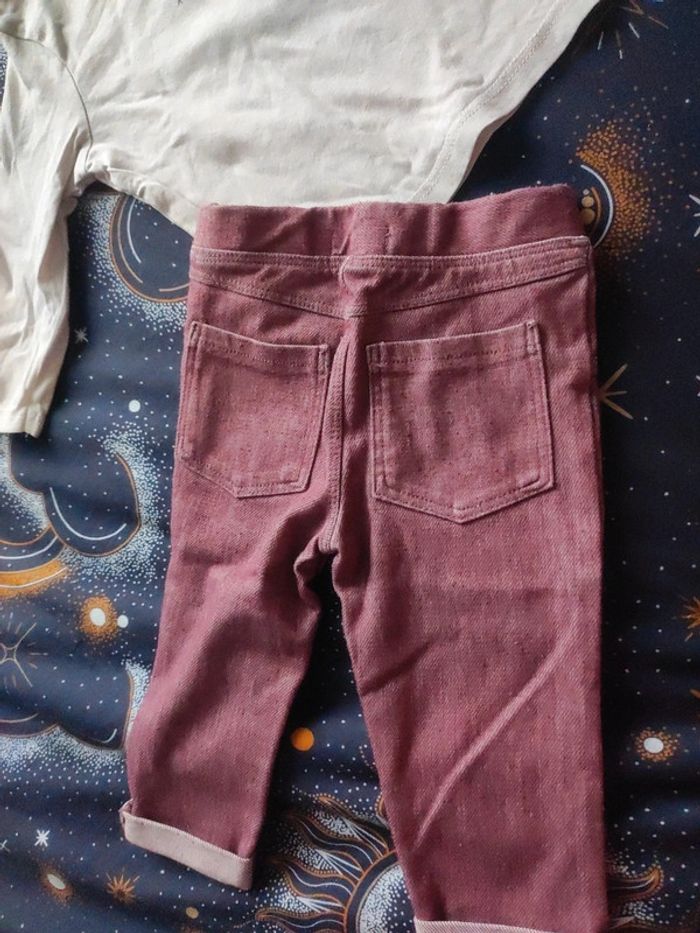 Tee-shirt manches longues Kiabi et pantalon bordeau type jean léger Mes petits cailloux 6 mois