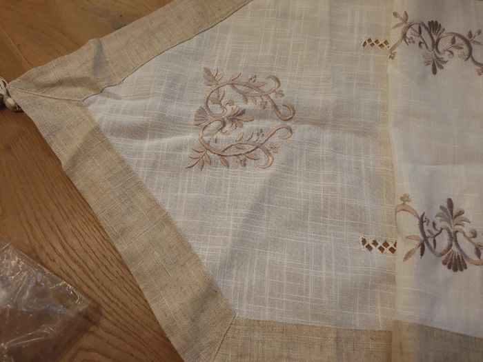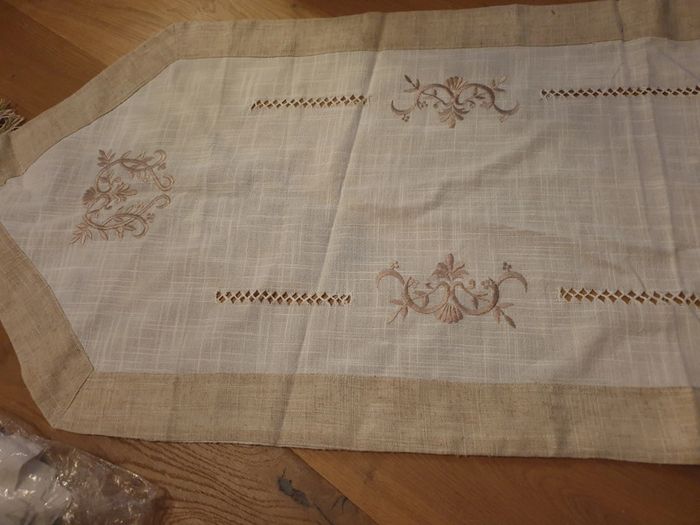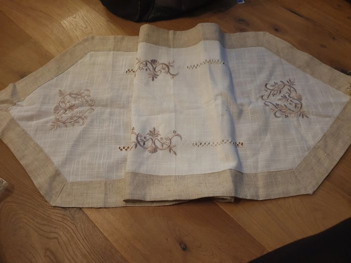 Grand chemin de table beige et blanc neuf - photo numéro 3