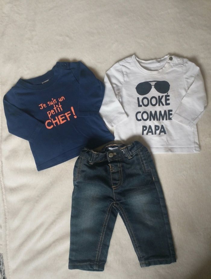 En très bon état sauf le col du tee-shirt ORCHESTRA qui a légèrement jauni (offert). Jeans MINIGANG et Tee-shirts manches longues ORCHESTRA et TAPE À L'ŒIL. Le tout en 3 mois.