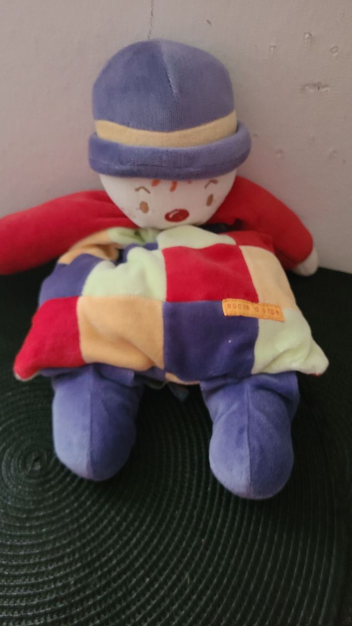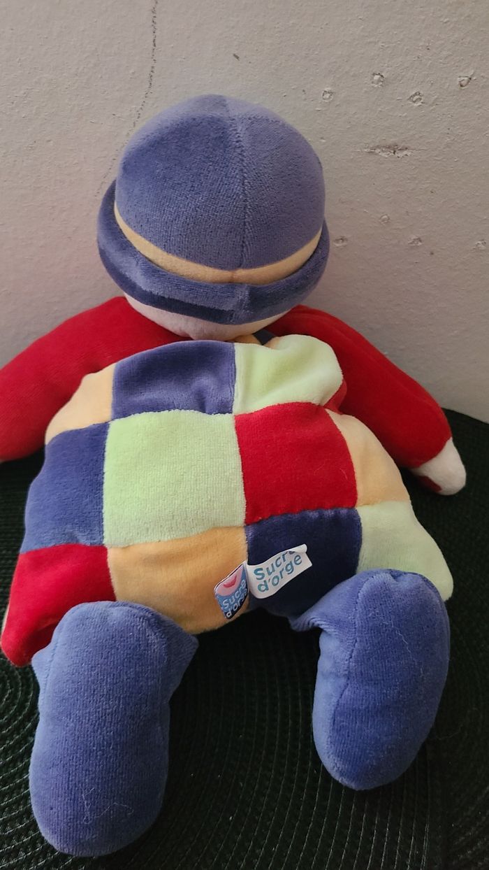 Doudou Clown à carreaux bleu jaune rouge Sucre d'Orge - photo numéro 1