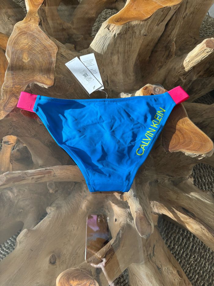 Bas de maillot de bain Calvin Klein pour femme Bleu et rose Inscription Calvin Klein à l'arrière en jaune Taille S Neuf avec étiquette N'hésitez pas à faire des lots ✨ réduction dès 2 articles (d'autres maillots de bain à vendre) Pour voir mes autres maillots de bain à vendre : #mdbludi2607 ✉️Pas de remise en main propre