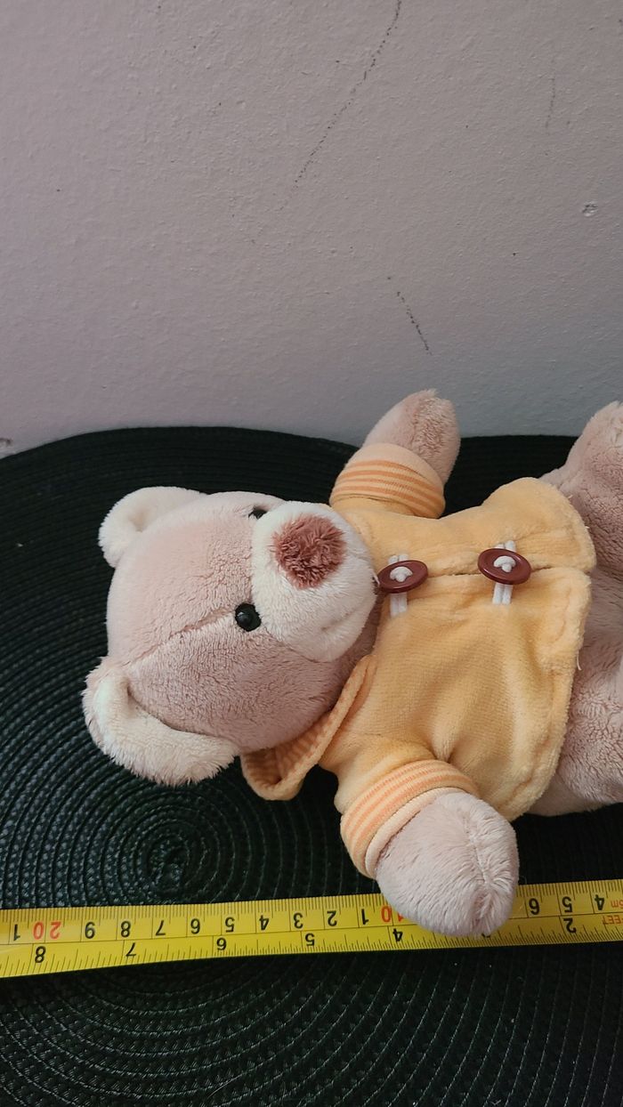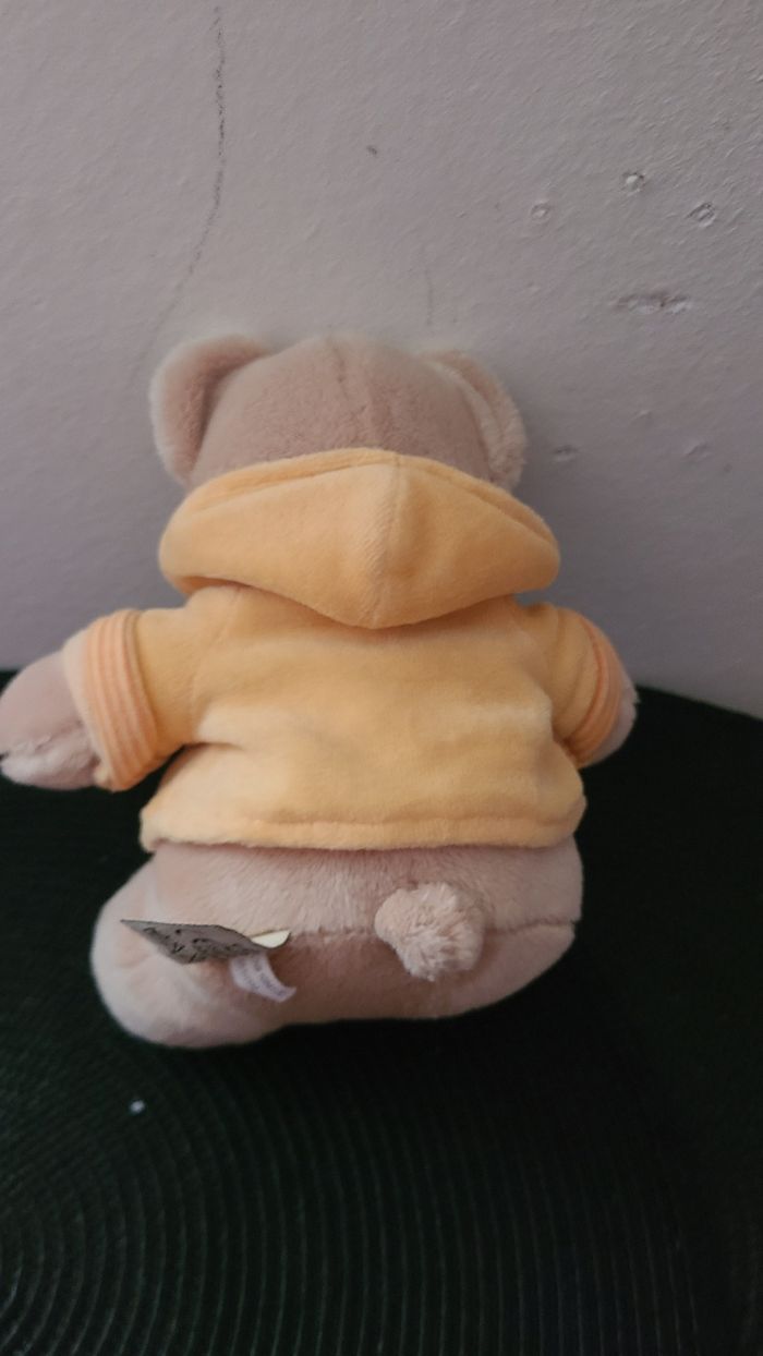Doudou peluche ours beige pull capuche jaune Kiabi Nicotoy - photo numéro 6