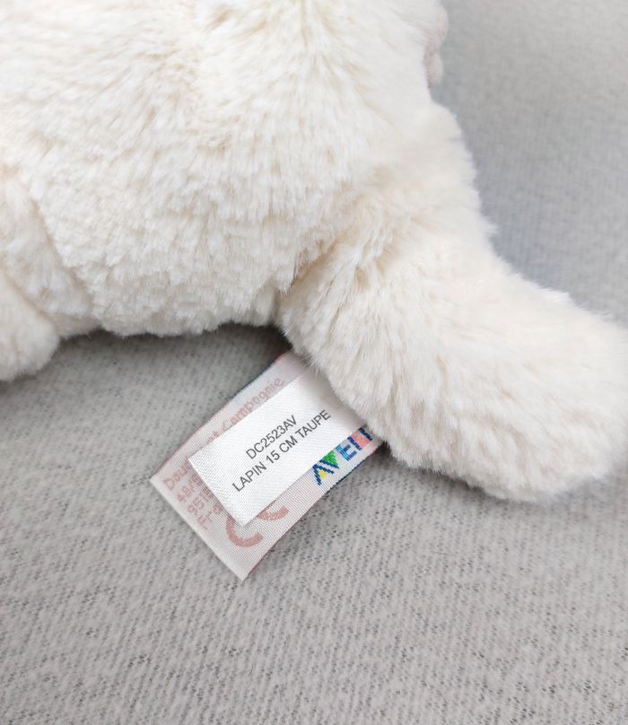 Peluche lapin blanc Doudou et compagnie bonbon crème taupe 15 cm DC2523 Avent Excellent état - n'a jamais servi de doudou, juste lavé Envoi soigné et rapide Réf A10705