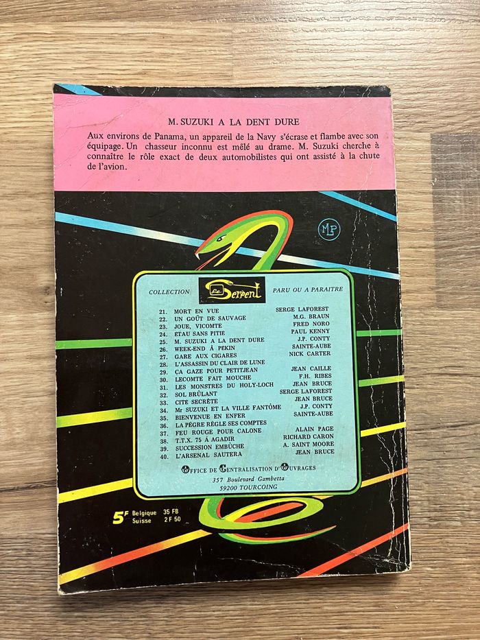 Livre BD de la série [URL masquée pour votre sécurité] àala dent dure de J.P.Conty en état satisfaisant car il est ancien. Toutefois, il n’est pas déchiré, il n’y a pas d’écriture ni de page manquante ⚠️ la reliure est désolidarisée à un endroit (voir photo) mais cela ne nuit pas à la lecture. Collection Le Serpent 194 pages Imprimé en 1975