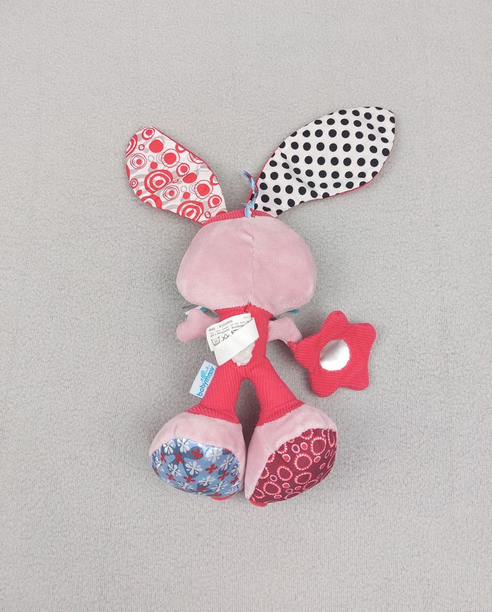 Doudou peluche Lapin d’activités Babymoov 20 cm sans les oreilles Bon état, lavé - attache manquante au dos et miroir opaque Envoi soigné et rapide Réf A10721