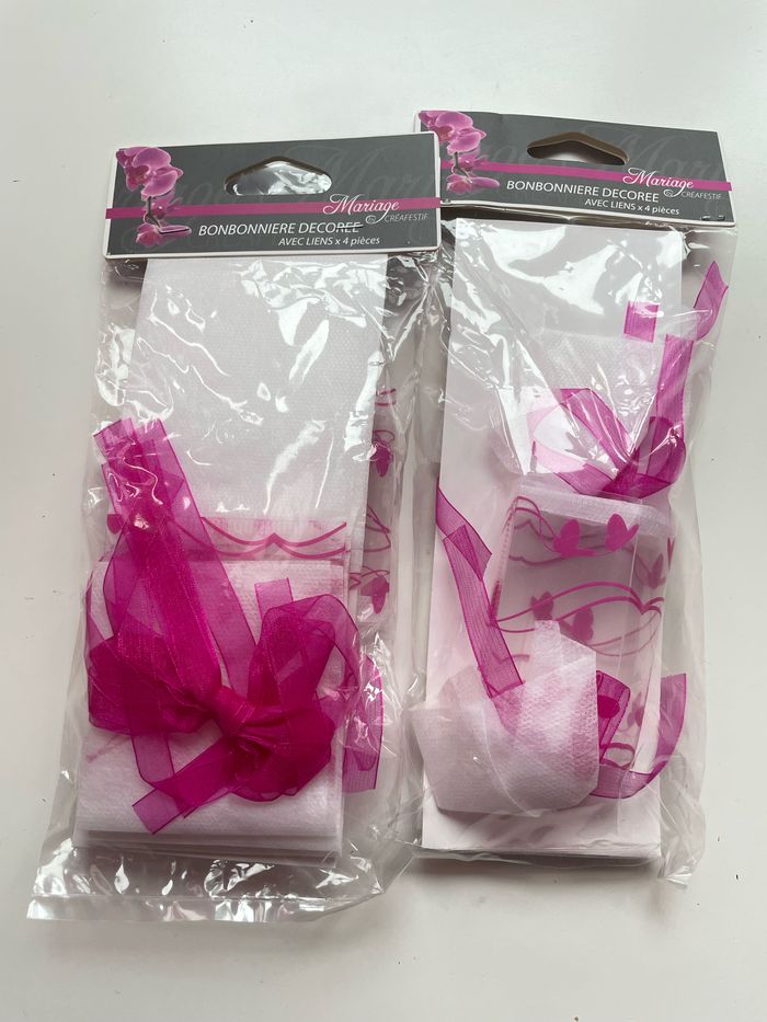 Décoration de fête 2 paquets de 4 bonbonnières décorées avec liens de 8 cm de haut Idéal pour dragées et confiseries Lot possible avec d’autres articles alors n’hésitez pas #fête #mariage #décoration #bapteme #anniversaire