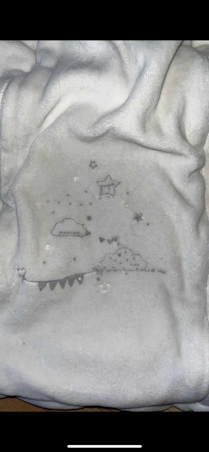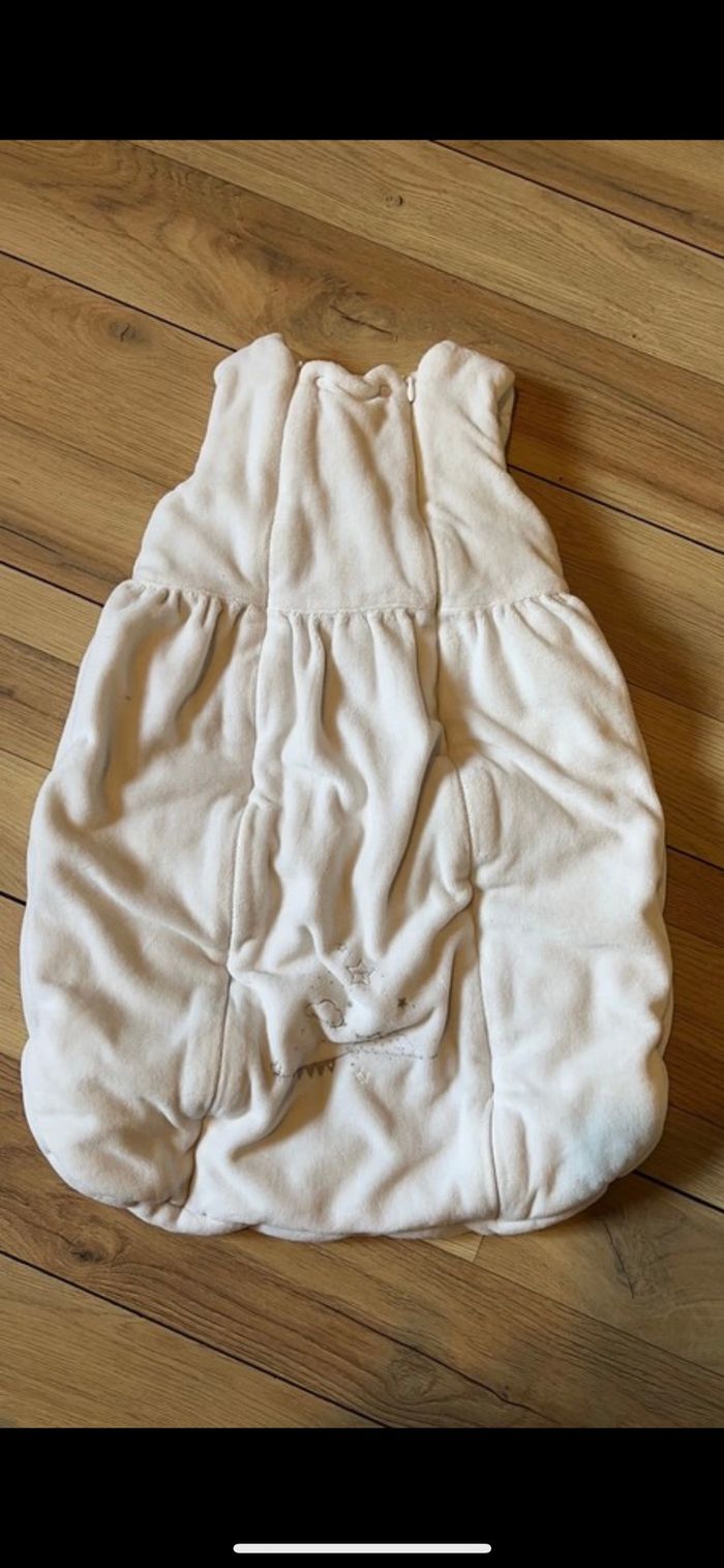 Gigoteuse sans manche, blanche, p'tit bisou - Matière velours rembourrée - Ouverture par devant par fermeture éclair (x2) et bouton pression - taille: unique mais équivaut à du 0/6 mois -Matière: velours Idéal Hiver #sianam01_enfant_3mois