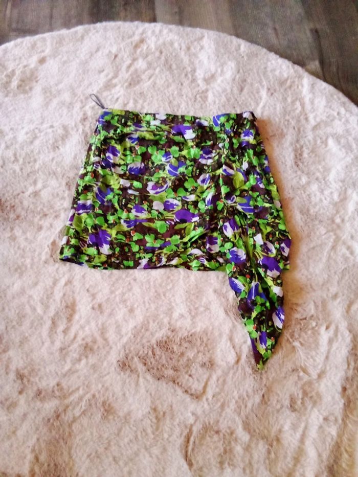 Jupe mini Zara, avec plis, fermeture par le côté, taille S, entièrement doublé. Mesure taille 36 cm, longueur 39 cm. #jupecourte#zara#tailleS#fleurie#reductionsurleslotsactivees