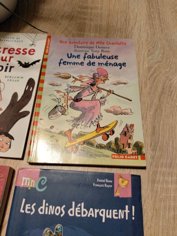 En très bon état La maîtresse a peur du noir Les dinos débarquent Une fabuleuse femme de ménage L' école des fées 1€99 le livre ou 6€ les 4🔖🔖🔖🤗