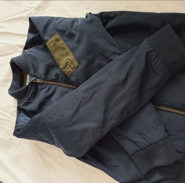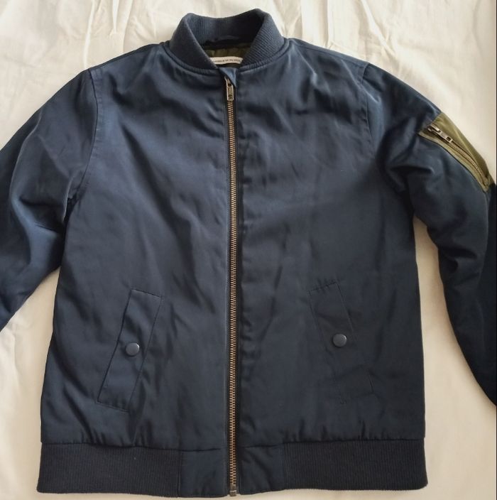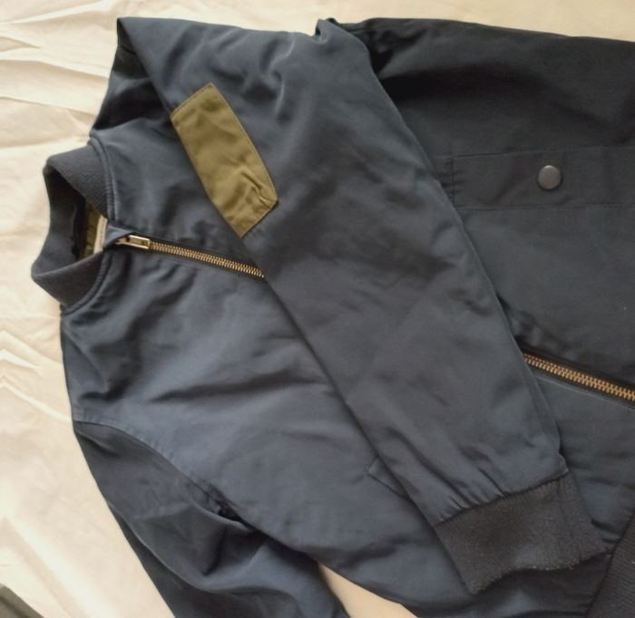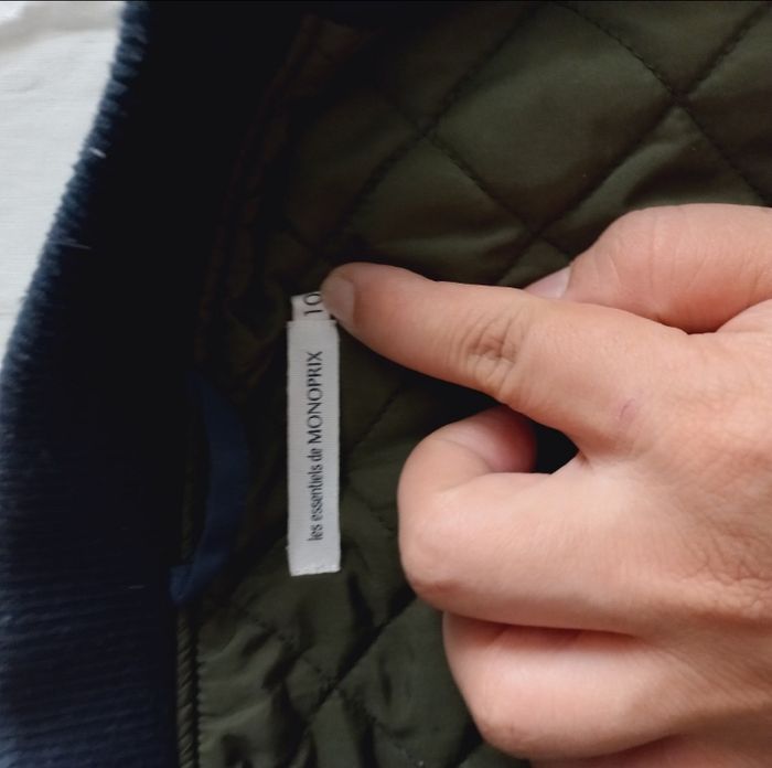 Veste pour enfant 10 ans, en très bon état couleur bleu avec doublure verte kaki, marque : monoprix, 100% polyester.