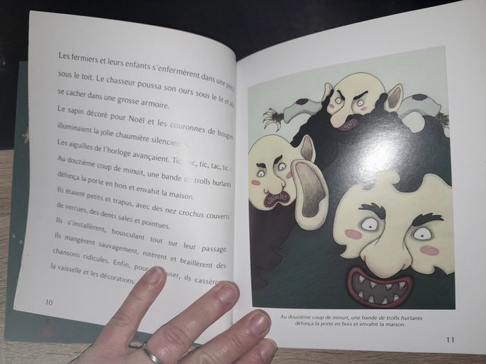 petit livre Tourbillon - Le dernier Noël des trolls #livreenfantscoubi62 Par un jour de grand froid, Ulrik le chasseur se mit en route vers le palais royal. Il était accompagné de son ours, un animal si remarquable, qu'il voulait l'offrir au Roi. À la tombée de la nuit, il aperçut une jolie chaumière et s'en approcha afin d'y trouver refuge. La famille qui y vivait s'apprêtait à prendre la fuite. Ces braves gens fuyaient leur maison qui, chaque année à la veille de Noël, était envahie par une horde de trolls, affreux et hurlants ! Ulrik décida que cette fois-ci, il allait leur réserver un accueil un peu particulier.