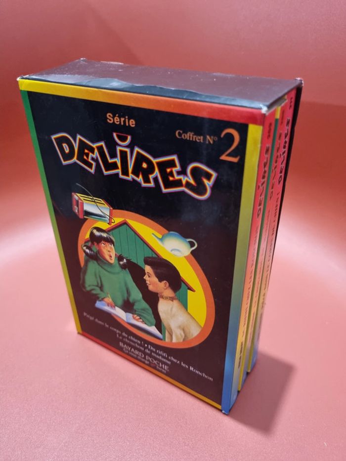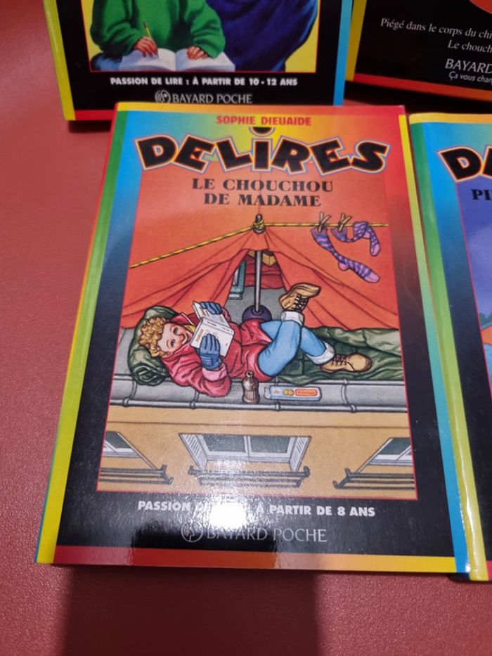Lot de 3 livres "Délires" - coffret n°2 Lot de 3 livres de la série "Délires" : - piégé dans le corps du chien - du rififi chez les ronchon - le chouchou de Madame livres en état correct #livreenfantscoubi62 baisse de prix le 29-10-2024
