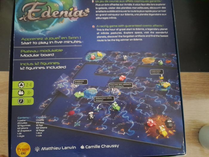 jeu de société Edenia + 8 ans complet très bon état sauf coins de la boîte Un jeu de course aux effets cosmiques garantis ! Plus un brin d’herbe sur Arridis. Il vous faut dès lors explorer la galaxie, visiter des planètes merveilleuses, découvrir des artefacts oubliés et trouver la route la plus rapide pour arriver en grand vainqueur sur Edenia, une planète légendaire aux pâturages infinis. #jeuxenfantscoubi62 #scolairescoubi62 #montessoriscoubi62