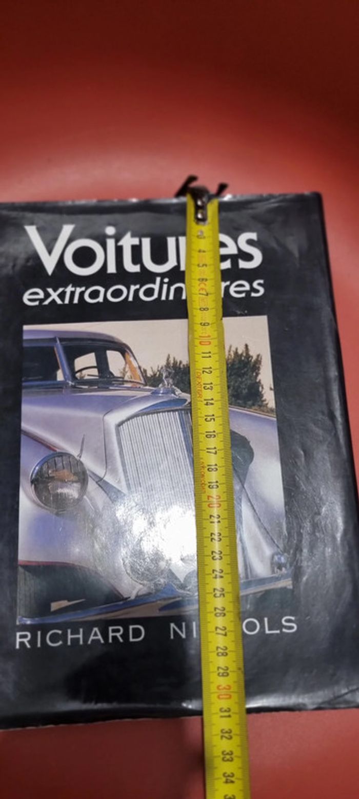 Voitures extraordinaires - alpha romeo 1931 , cadillac , corvette , jaguar , lotus , porsche .... livre de 160 pages , format 24cm X 31cm en état très correct _Livre illustre par des photos en couleurs . _Livre ecrit par Richard Nichols aux éditions France Loisirs en 1990 . la jaquette est en mauvaise état, 1 petite tache sur la dernière page prix en conséquence baisse de prix le 29-09