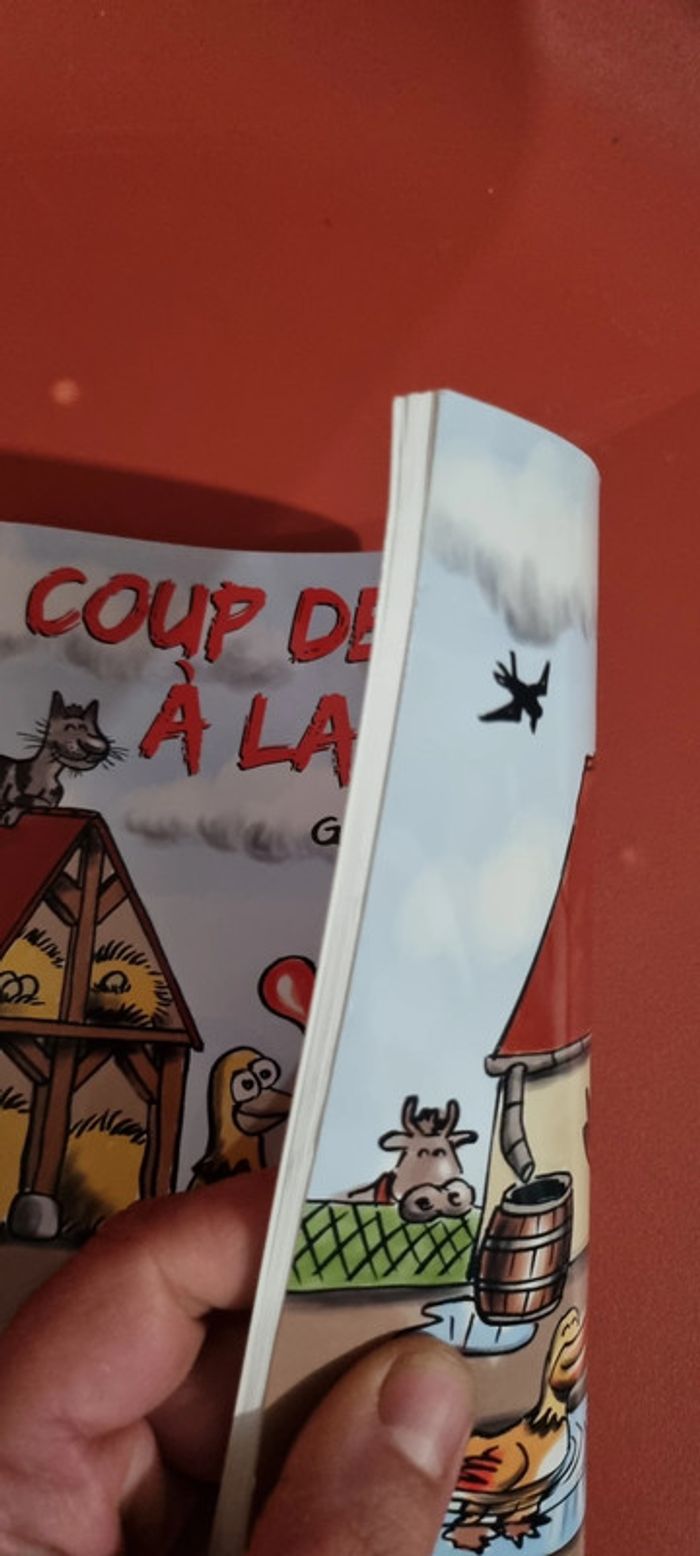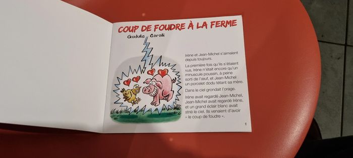 livre Coup de foudre à la ferme Gudule et Carali livre enfant édition lire c'est partir dessiné par carali (Psykopat - Fluide glacial ...) une tache encrage sur dernière page , visible sur la photo