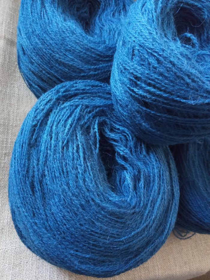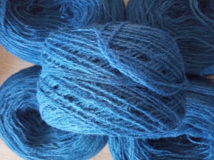 Lot de 4 Pelotes (320g) Couleur: Bleu 3 Fils simples pas très épais de taille identique au total 320g Lot en parfait état