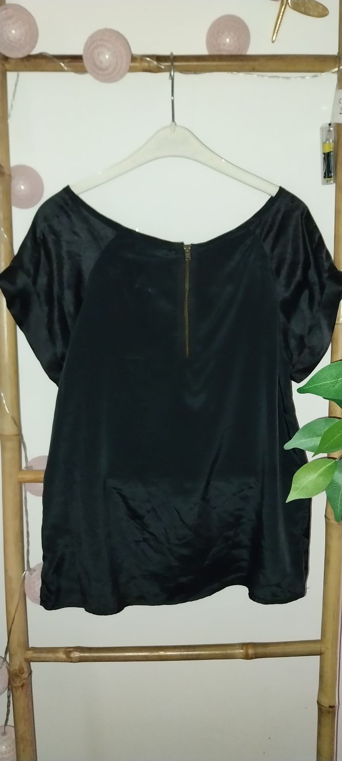 Top / blouse manches courtes satiné noir neuf Taille 38/ M by Tout simplement - photo numéro 7