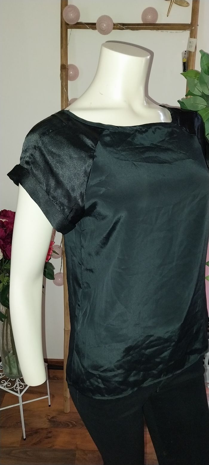Top / blouse manches courtes satiné noir neuf Taille 38/ M by Tout simplement - photo numéro 9