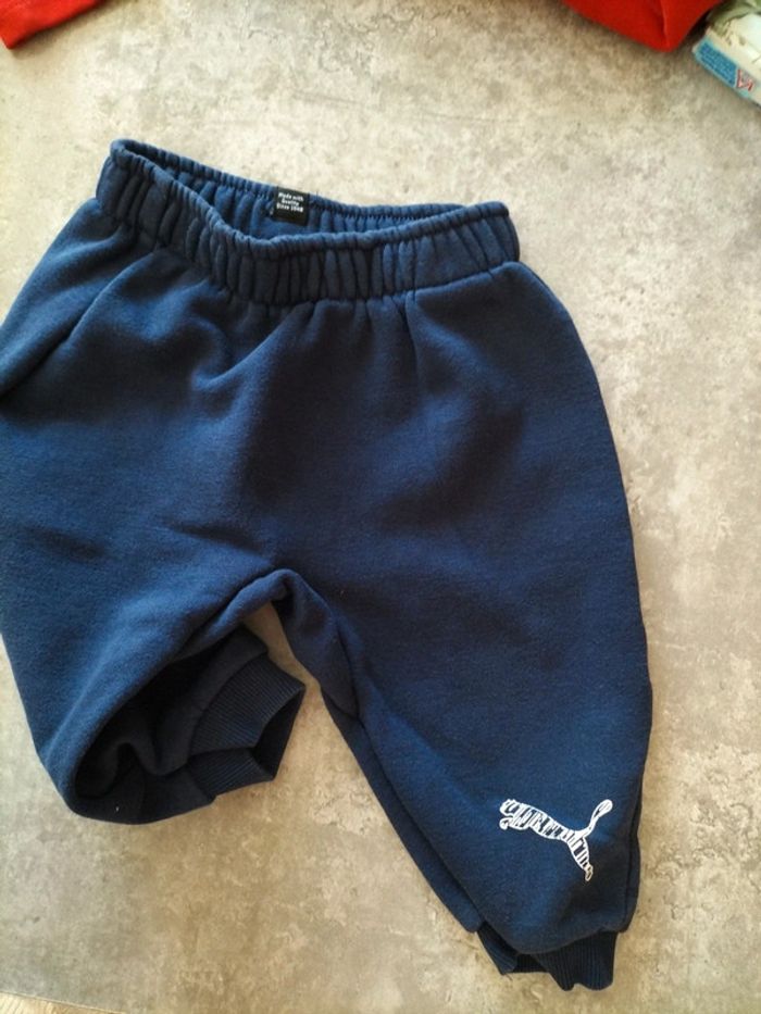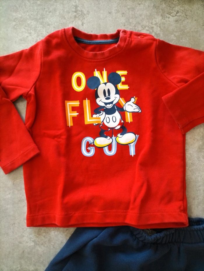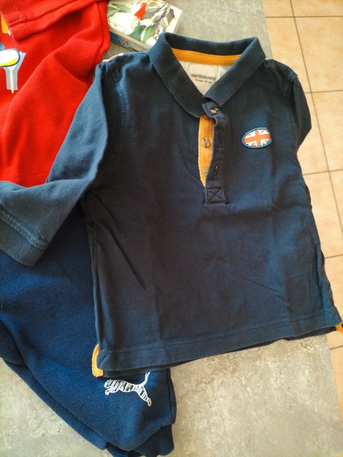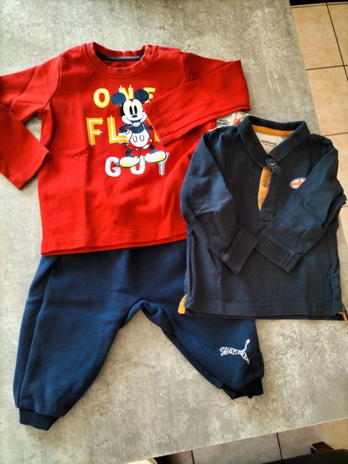 Un tee-shirt bleu manches longues vert baudet Un sweatshirt rouge Disney Un pantalon de jogging bleu puma #fanfangarcon18mois@fanfan35320