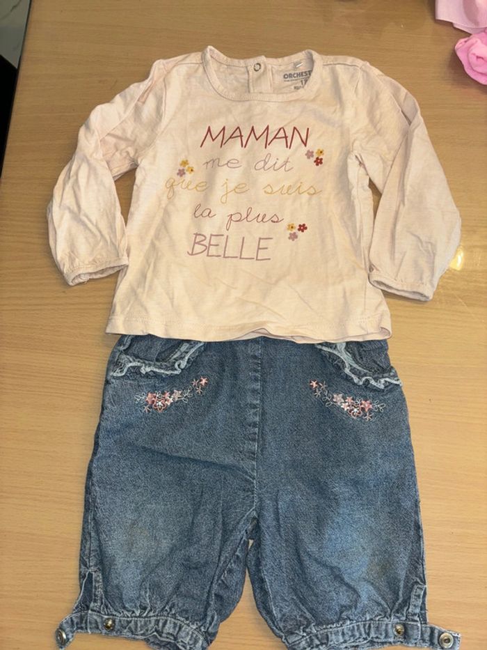 Ensemble haut manches longues et pantalon jean taille 18 mois - photo numéro 1