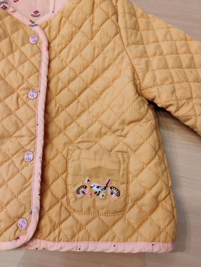 Vêtements bébé fille gilet réversible moutarde ou abricot/rose motif fleur - photo numéro 3