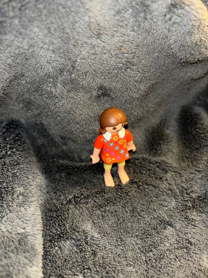 Playmobil petite fille tee shirt orange à fleur collection - photo numéro 1