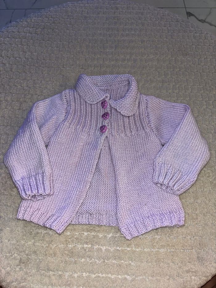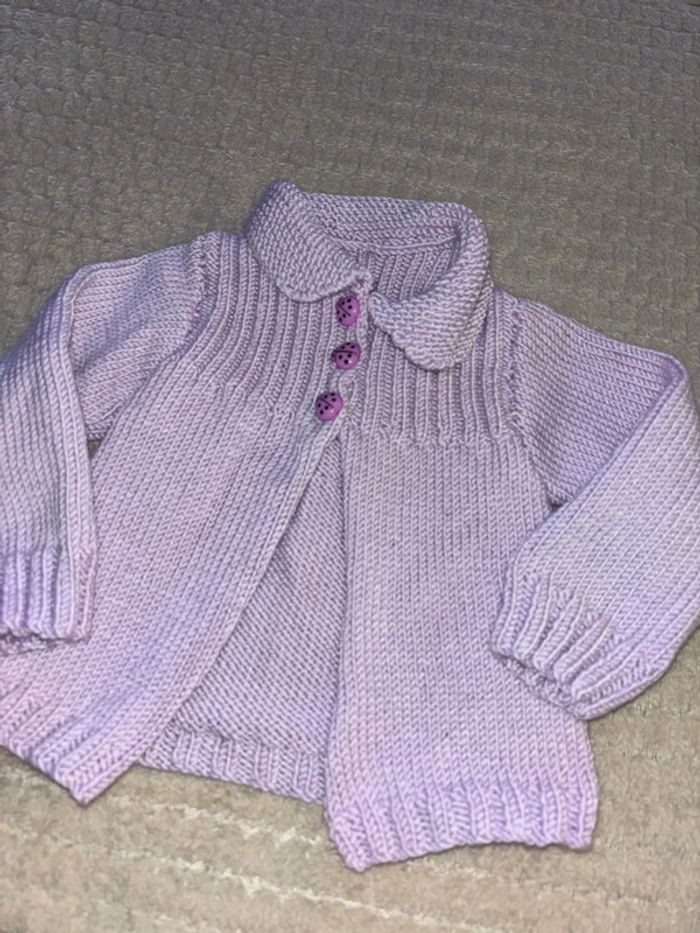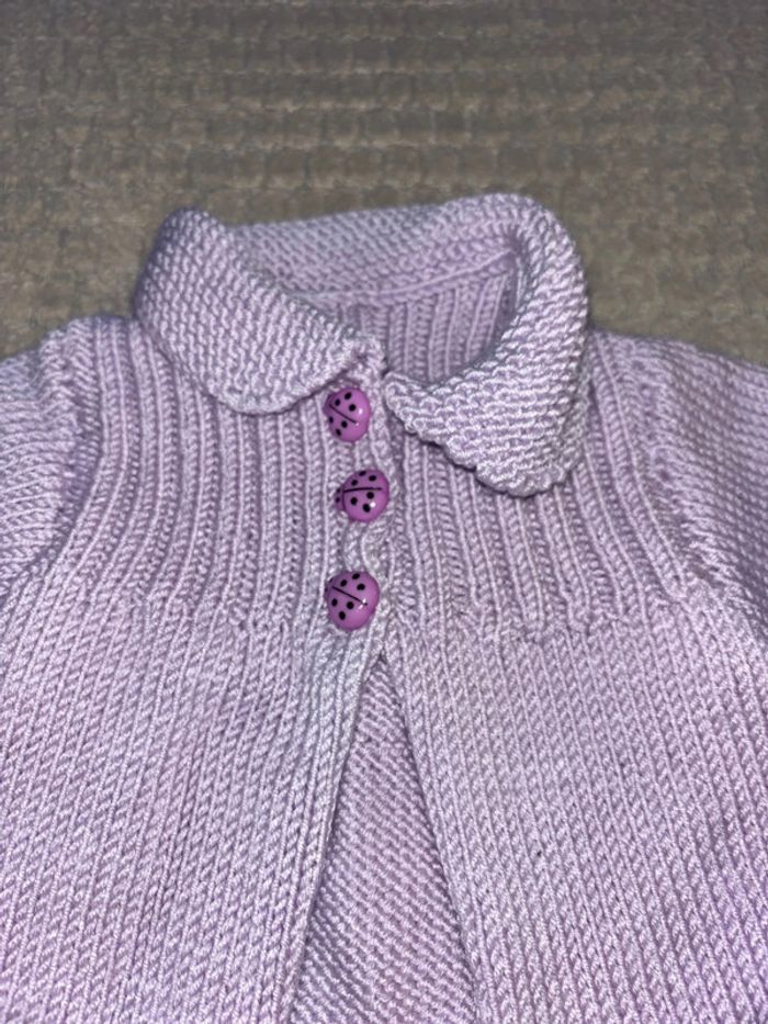 Gilet fait main couleur lilas taille 9/12 mois très bon état