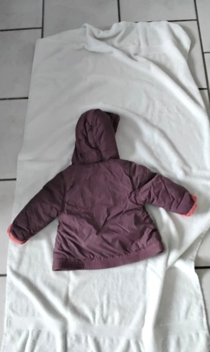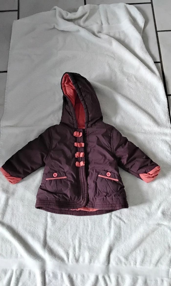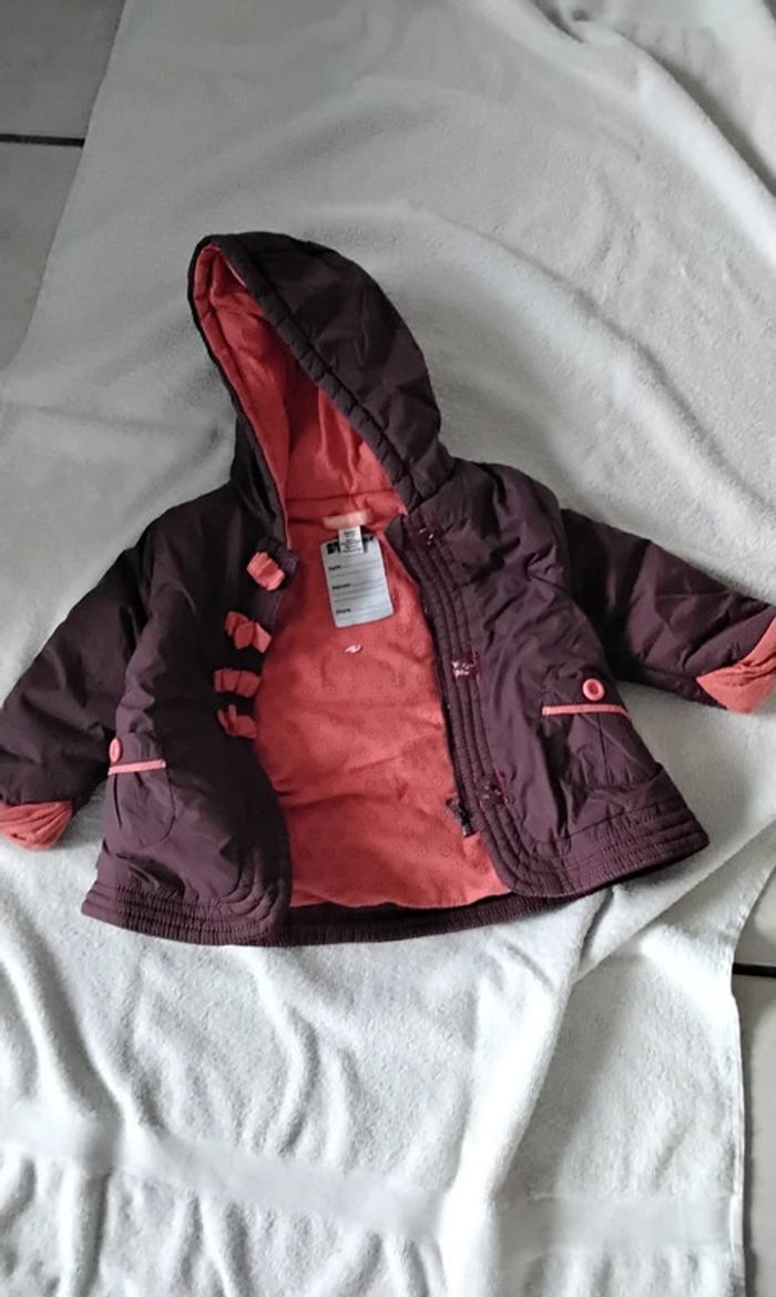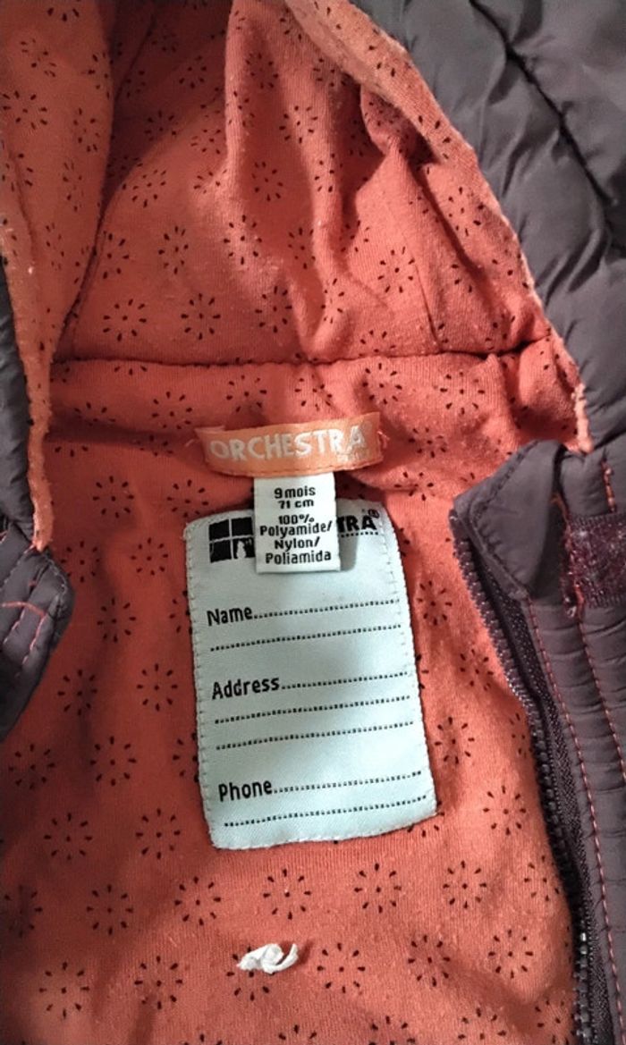 Blouson à capuche Ce ferme avec une fermeture et des scratch 2 poches Couleur bordeaux extérieur et saumon intérieur De marque Orchestra Taille 9 mois , 71 cm #moreau36_fille_9_mois 9