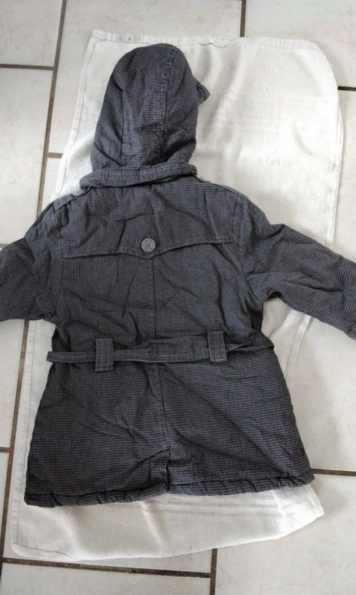 Manteau gris à rayures noir,  capuche amovible,  fermeture boutons ,  Kidkanai, 24 mois  86 cm - photo numéro 3