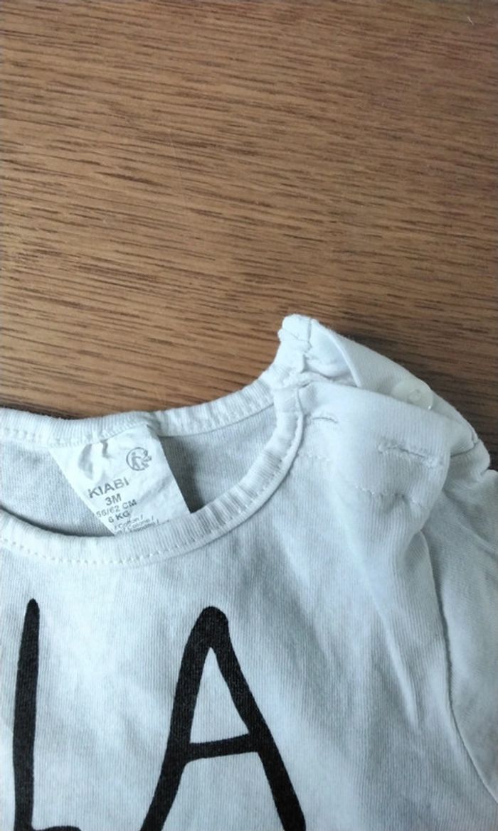 Chemise manches longues  ,blanc avec une inscription ( bla bla bla) Kiabi,  3M,  56-62cm - photo numéro 3