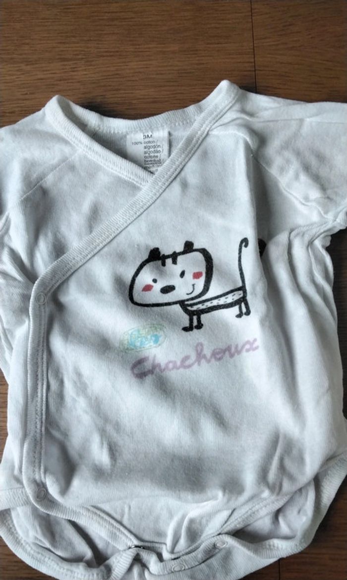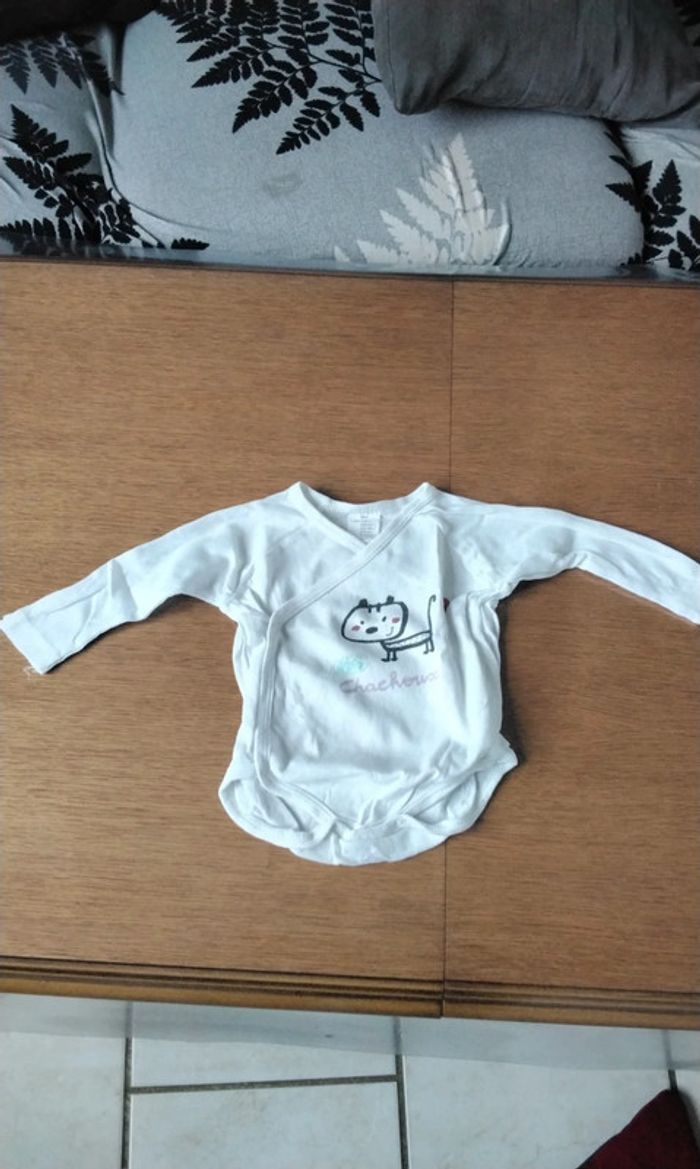 Body manches longues De couleur blanc avec un motif de chat et une inscription les chacheux Ce ferme avec des pressions entre les jambes et devant Taille 3M #moreau36_fille_3_mois