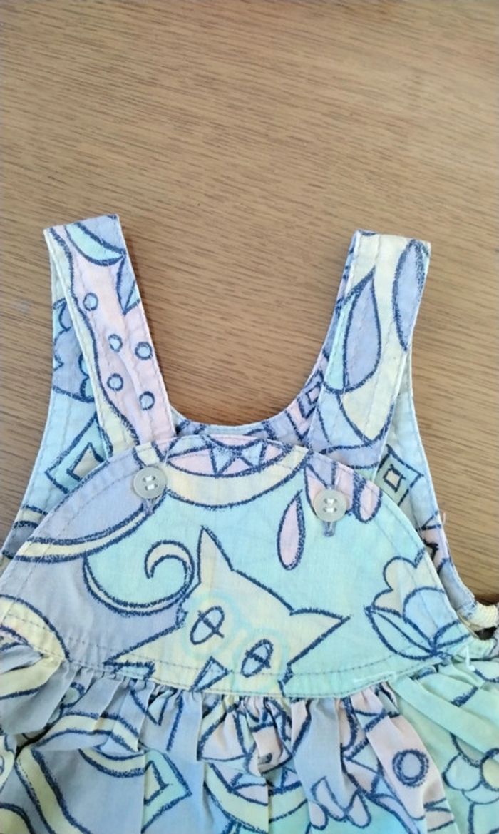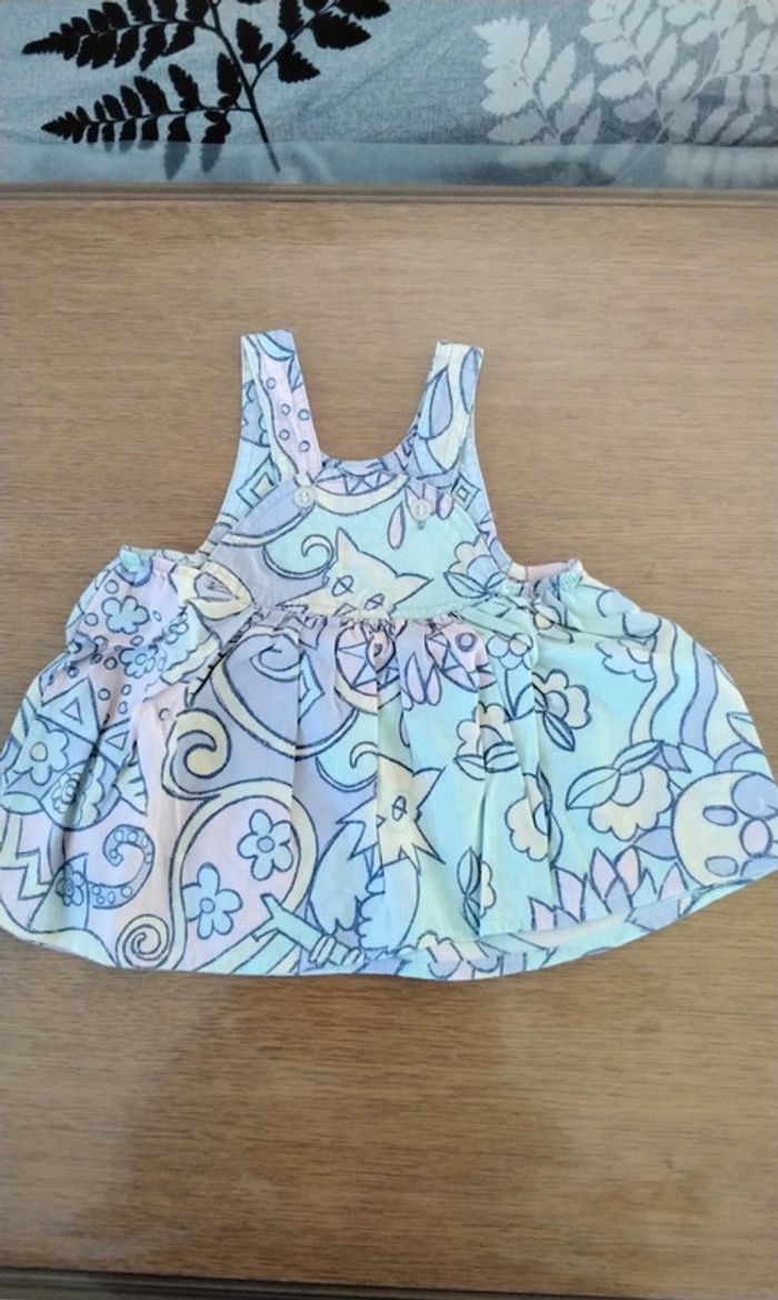 Robe été à bretelles Avec divers motifs et divers couleurs Avec des boutons au bretelles De marque TUCHA Taille marquée 2 mais fait même Taille que les 3M #moreau36_fille_3_mois