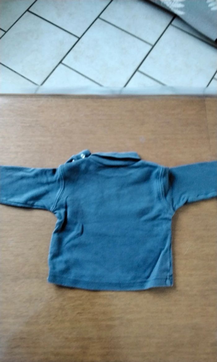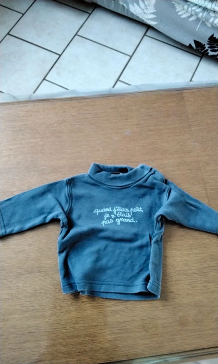 Polo manches longues De couleur bleu marine Avec un petit col Avec une inscription ’ quand j était petit je n était pas grand ’ Avec des pressions sur l épaule De marque Grain de Blé Taille 3M #moreau36_garcon_3_mois