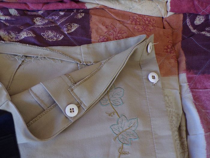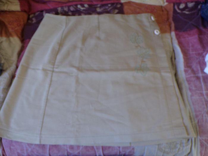 jupe mini portefeuille très légère a porter de couleur beige avec un motif fleur taille 44 s'attache avec 1 bouton à l'intérieur et 2 boutons sur le coté #moreau36_taille_XXL