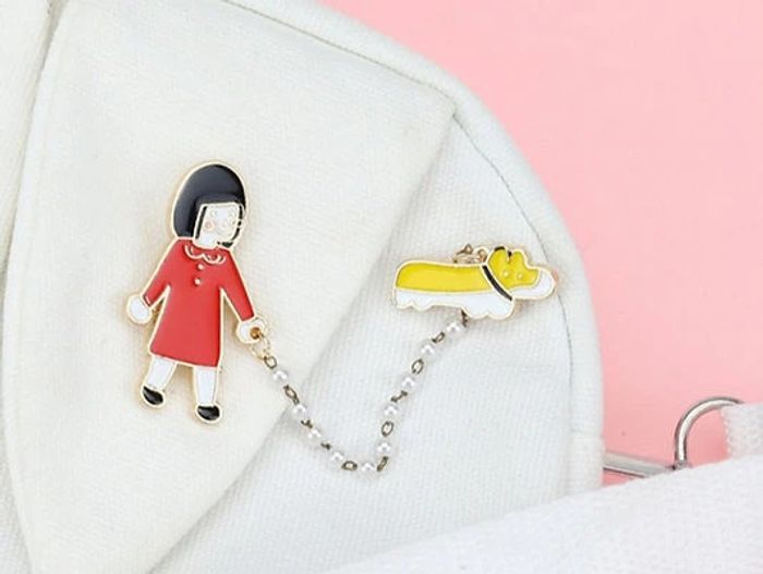 Double pin's Fille robe rouge et son chien reliés par une chaînette Fille robe rouge, H : 4,4 cm, L : 2,5 cm Chien jaune et blanc, H : 1,3 cm, L : 2,8 cm #pins #broche #brochefemme #bijouxfemme #accessoires #accessoiresfemme #bijoux #brocheneuve #bijouxneuf #cadeaufemme #idéecadeau #bijouxfemme #femme #bijoux #acierinoxydable #bague #collier #bracelet #bouclesoreilles #or #dorée #jewelry #stainlesssteel #ring #necklace #earrings #gold #golden #gioielli #acciaionossidabile #anello #collana #braccialetto #orecchini #oro #joyas #aceroinoxidable #anillo #collar #pulsera #pendenties #dorado #sieraden #roestvrijstaal #armband #oorbellen #goud #gouden #bijouxunicorn