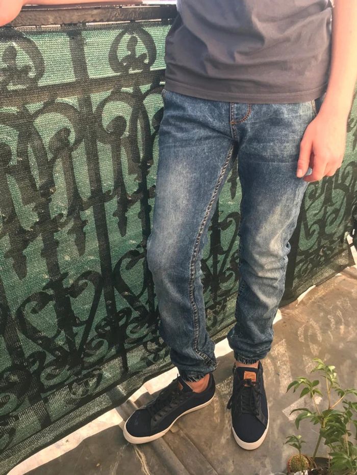 Jeans taille élastique 14 ans Jean taille droite Élastique à la taille Bas élastiqués Porté très peu #jeans #jeans14ans #vêtement14ans #garçon14ans #garçonunicorn
