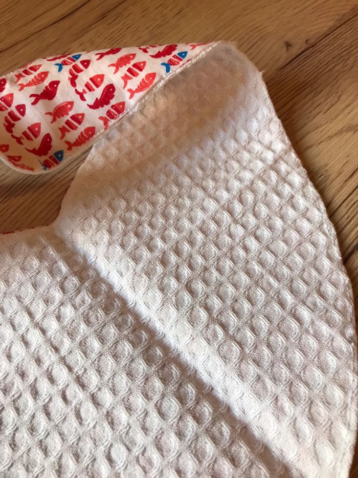 Corbeille coton imprimé poissons rouges Bavoir bandana imprimé poissons rouges et coton blanc nid d’abeille Attache pression rouge #corbeille #corbeilletissus #bavoirbébé #bavoirbandana #bavoirfaitmain #cadeaubébé #cadeaudenaissance #bébéunicorn